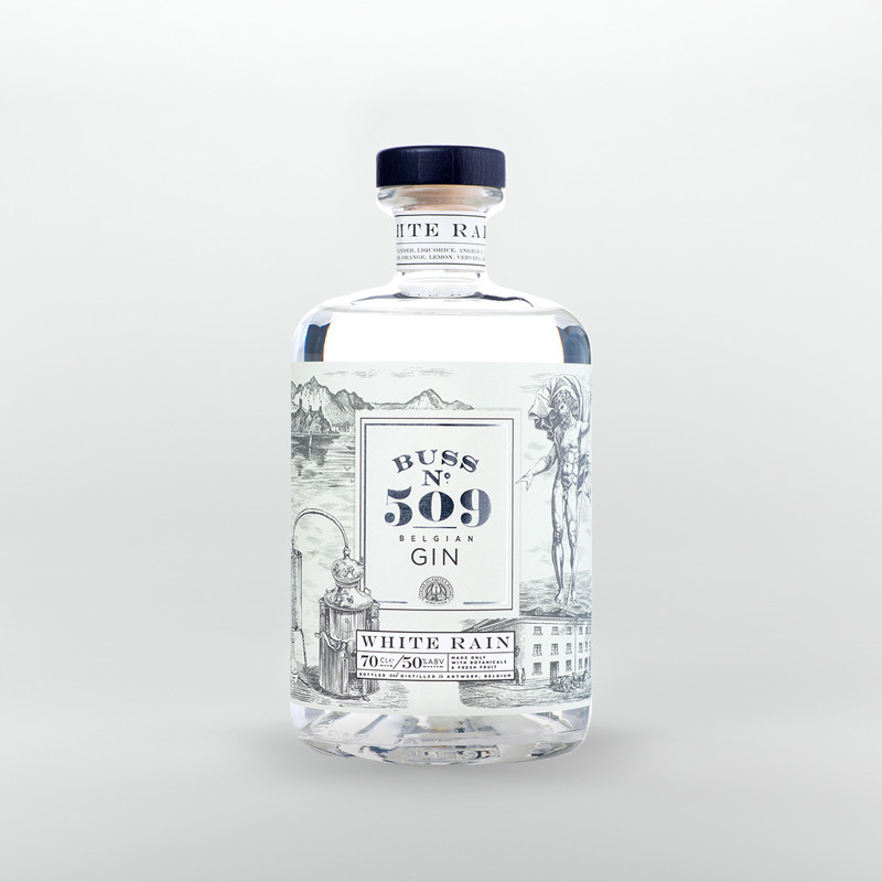 Gin BUSS n.509 White Rain nasce dal connubio di botaniche fresche al 100%, erbe e frutta: ginepro, coriandolo, liquirizia, angelica, vaniglia, cardamomo, iris, arancia, limone, verbena, maggiorana